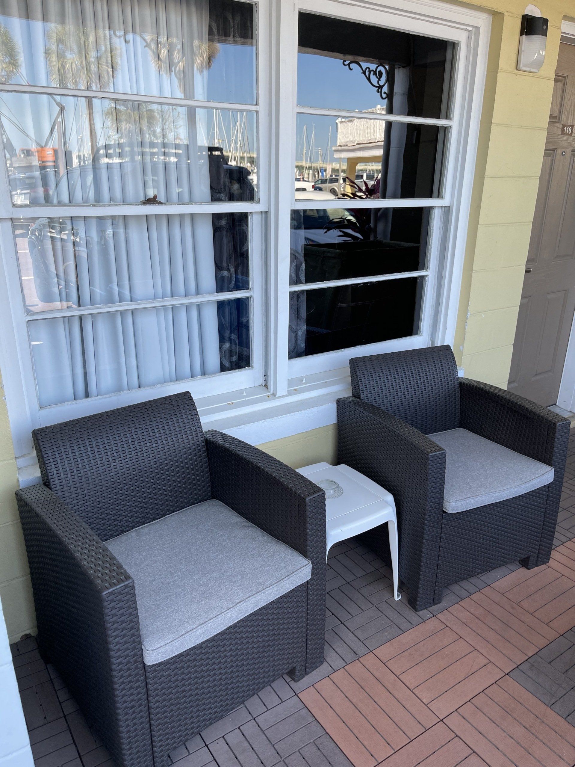 By Boat...our renovated motel is accessible by land or water. Many of our guests arrive by boat and dock at the City Municipal Marina located right out front. Once inside, you'll enjoy a spacious guestroom equipped with comfortable king or queen beds, a flat screen TV, contemporary furnishings, a refrigerator, a microwave, and a Keurig® coffee maker.
